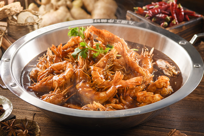 食材精選進口大蝦,搭配秘制底料制作而成,研發出一鍋兩吃的飲食模式(先吃蝦后涮菜,葷素搭配隨心選),打造出綠色健康的飲食新文化。